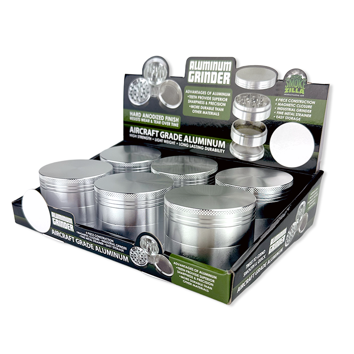 Metal 4 Piece Grinder 63MM - 6 Pieces Per Retail Ready Display 24865GPSILVER