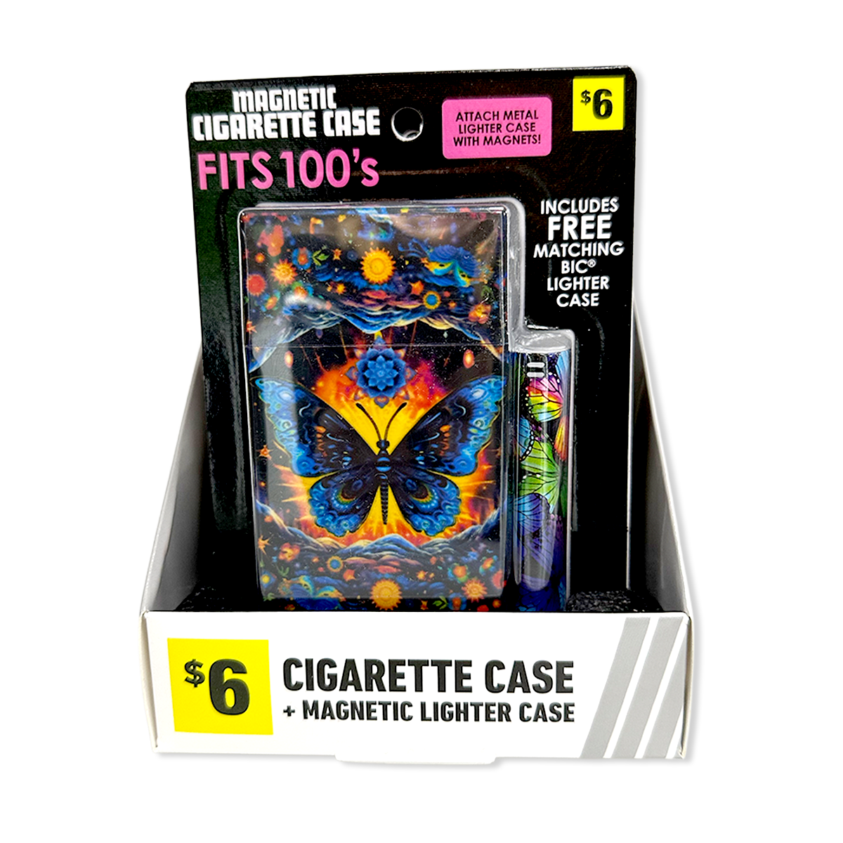 100s Cigarette Storage Case With Magnetic Lighter Case - 4 Pieces Per Retail Ready Display 41828
