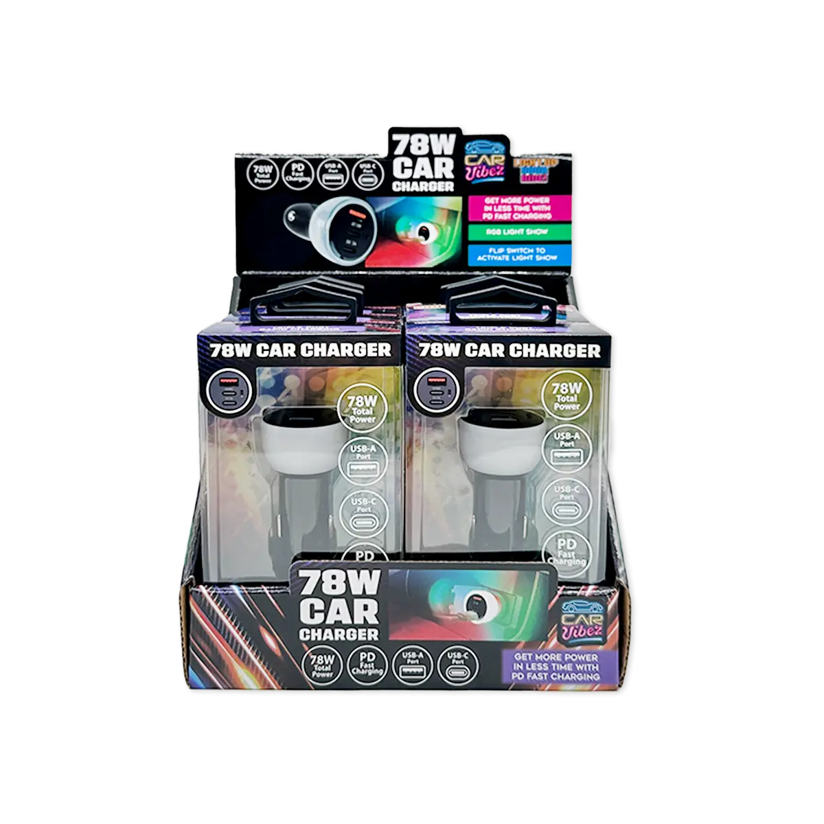 Car Charger Triple Port USB / USB-C LED 78W - 6 Pieces Per Retail Ready Display 25693