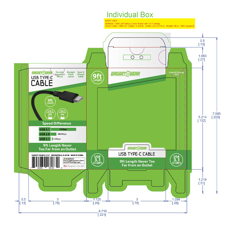 Charging Cable USB-A-to-USB-C 9FT - 6 Pieces Per Retail Ready Display 26183 GADGET GEAR