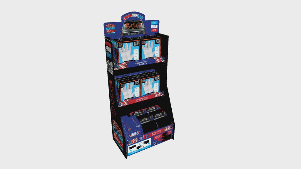 This Waving Hands Floor Display is a must-have for every car enthusiast. It includes 8 metal car decals, 4 metal trailer hitches, and 12 hand gesture lights with super bright LEDs that shine bright day and night. Add some fun and personality to your ride with these eye-catching accessories! All items pre-priced.