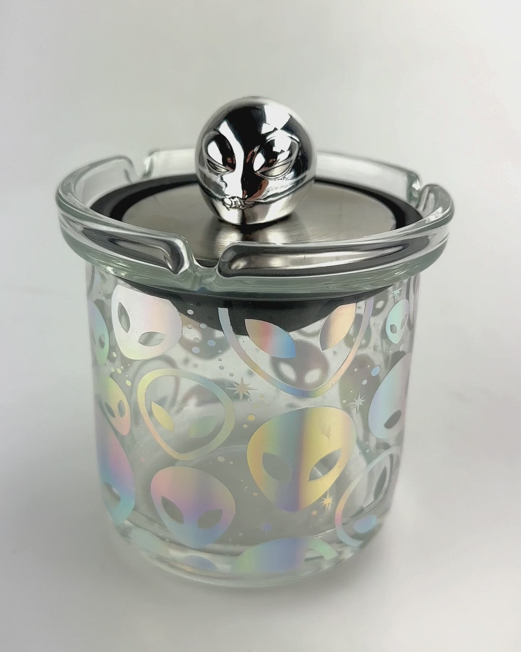 Keep things clean and simple with this extra-large glass ashtray. The sturdy glass bucket features a chrome lid and metal funnel to keep cigarette butts out of sight. It’s easy to empty and completely dishwasher safe, so cleanup is quick. A great choice for patios, porches, or anywhere you want a clean, convenient ashtray that looks good and works even better.