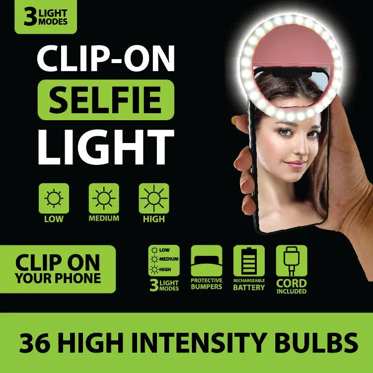 Rechargeable Clip On Selfie Light - 6 Pieces Per Retail Ready Display 22669