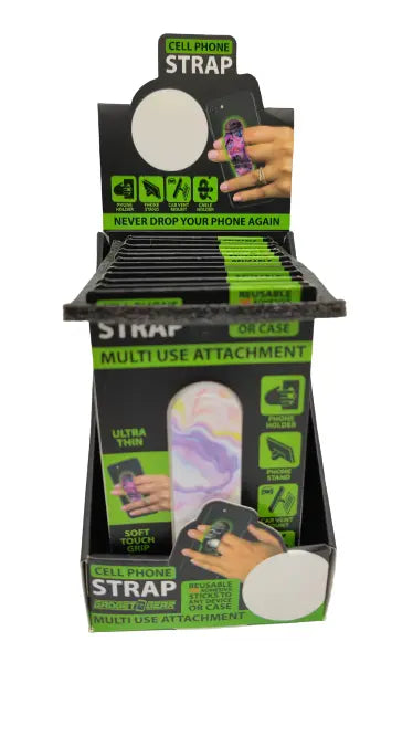 Never drop your phone again! Our Cell Phone Strap can be used as a phone holder, stand, car vent mount, cable holder and more! Truly a multi-use attachment. Ultra thin. Soft touch grip. Reusable 3M adhesive sticks to any device or case. Comes in a variety of designs.