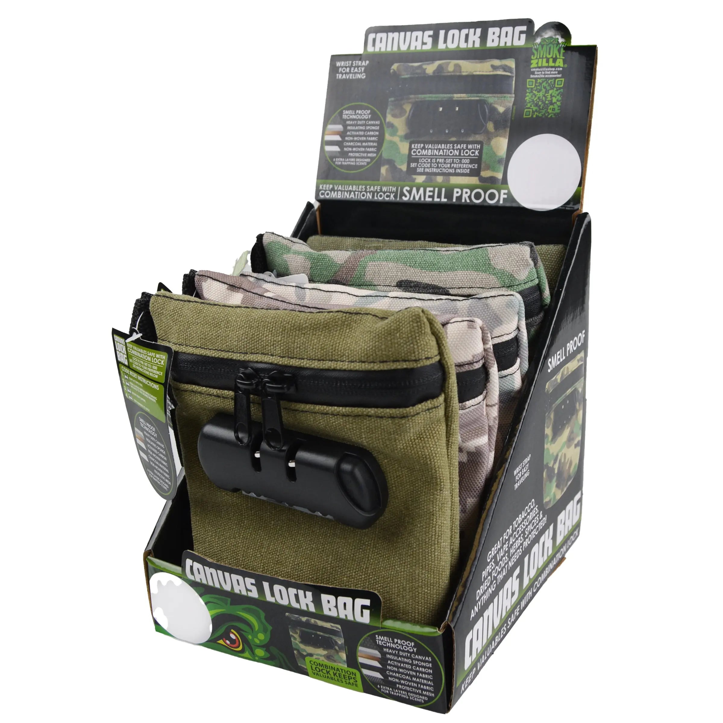 Smell Proof Canvas Locking Storage Bag - 6 Pieces Per Retail Ready Display 23221