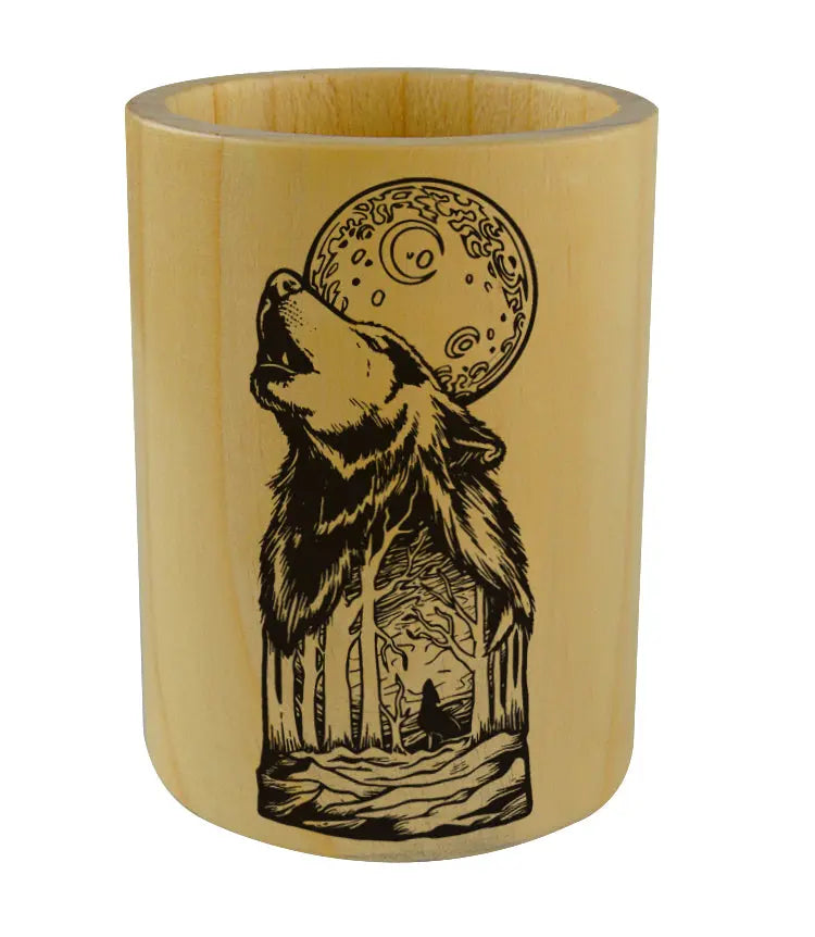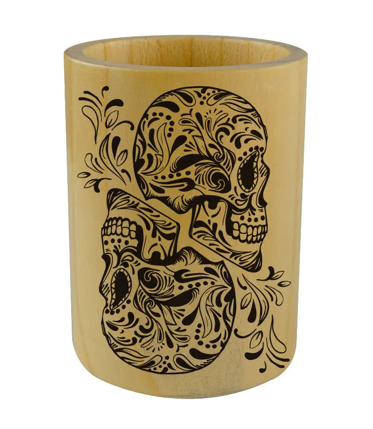 Handmade pine wood can insulator cooler features protective cork interior and comes in assorted etched designs. Each display includes select hand-grip styles – ensuring a secure grasp!