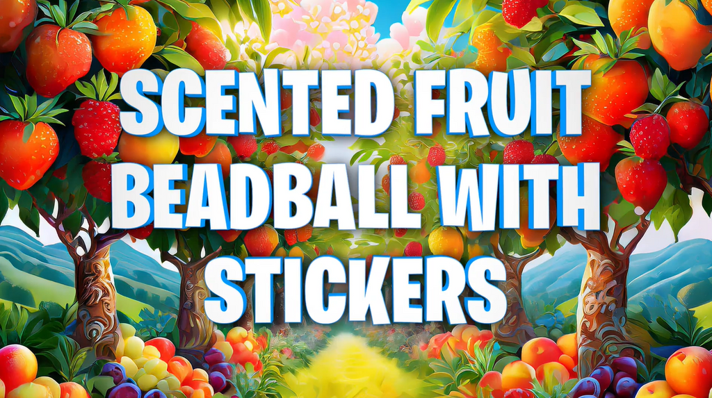 Squish and Squeeze Scented Fruit Bead Ball Toy with Stickers - 12 Pieces Per Pack 23356