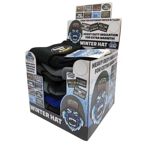 Be prepared for Winter weather! Gear for work or play! Our Polar Gear Patch Winter Hats provide warmth, comfort and personality. Assorted knit design styles included. Each hat features an unapologetic patch phrase. Great gift idea. Collect them all!