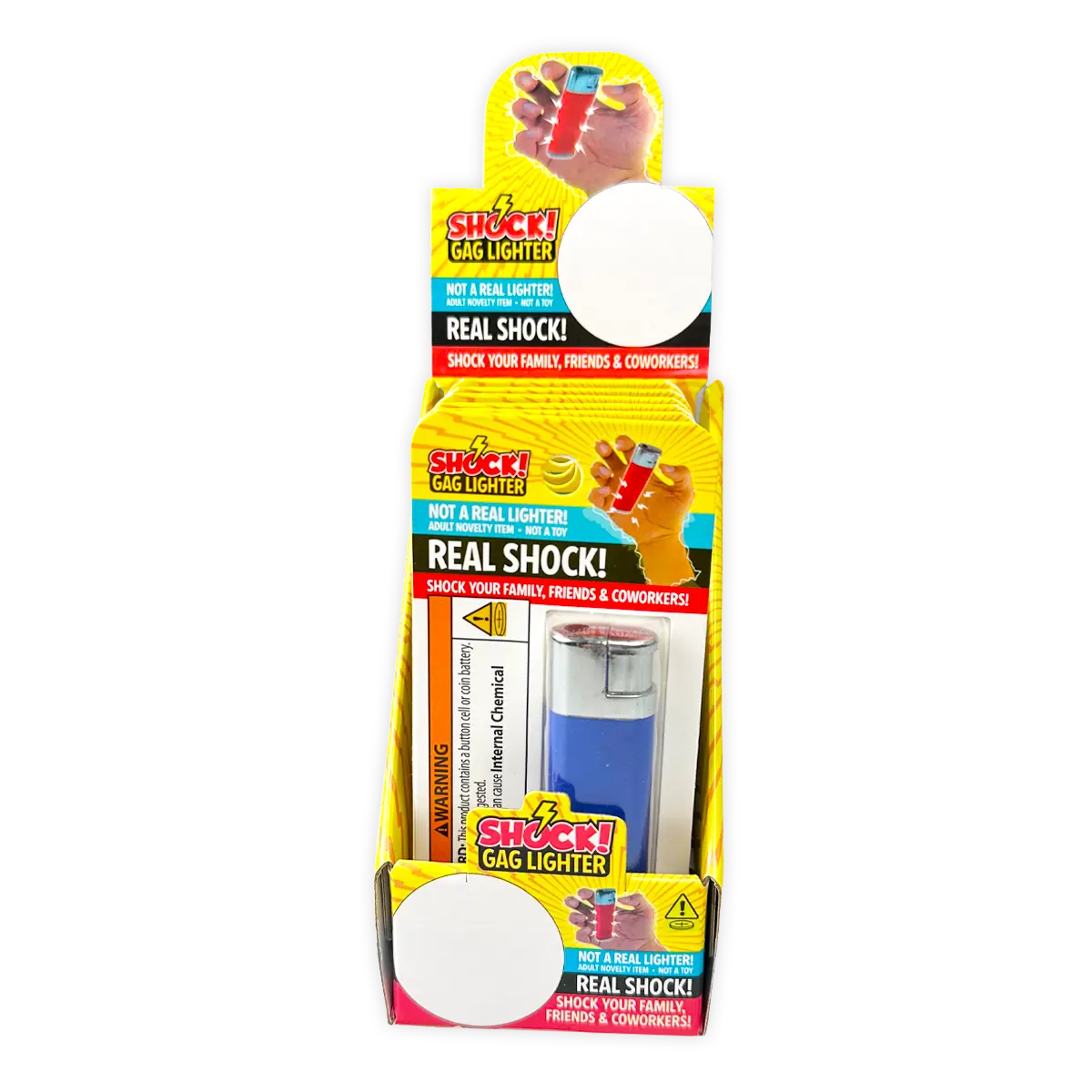 This GAG SHOCK LIGHTER will give anyone who tries to use it a nice little JOLT! Comes in assorted colors. THIS PRODUCT IS NOT A SMOKING ACCESSORY.