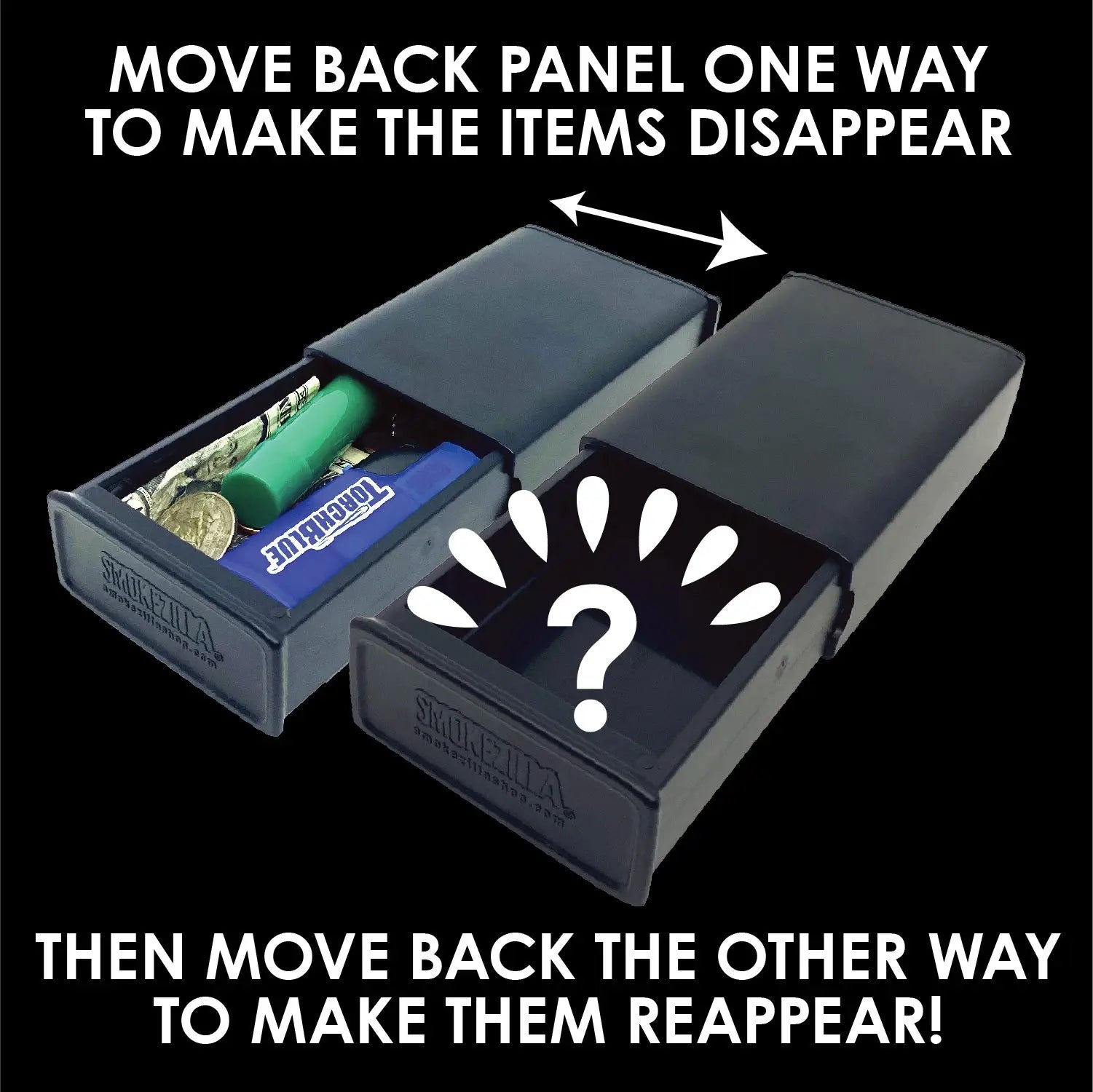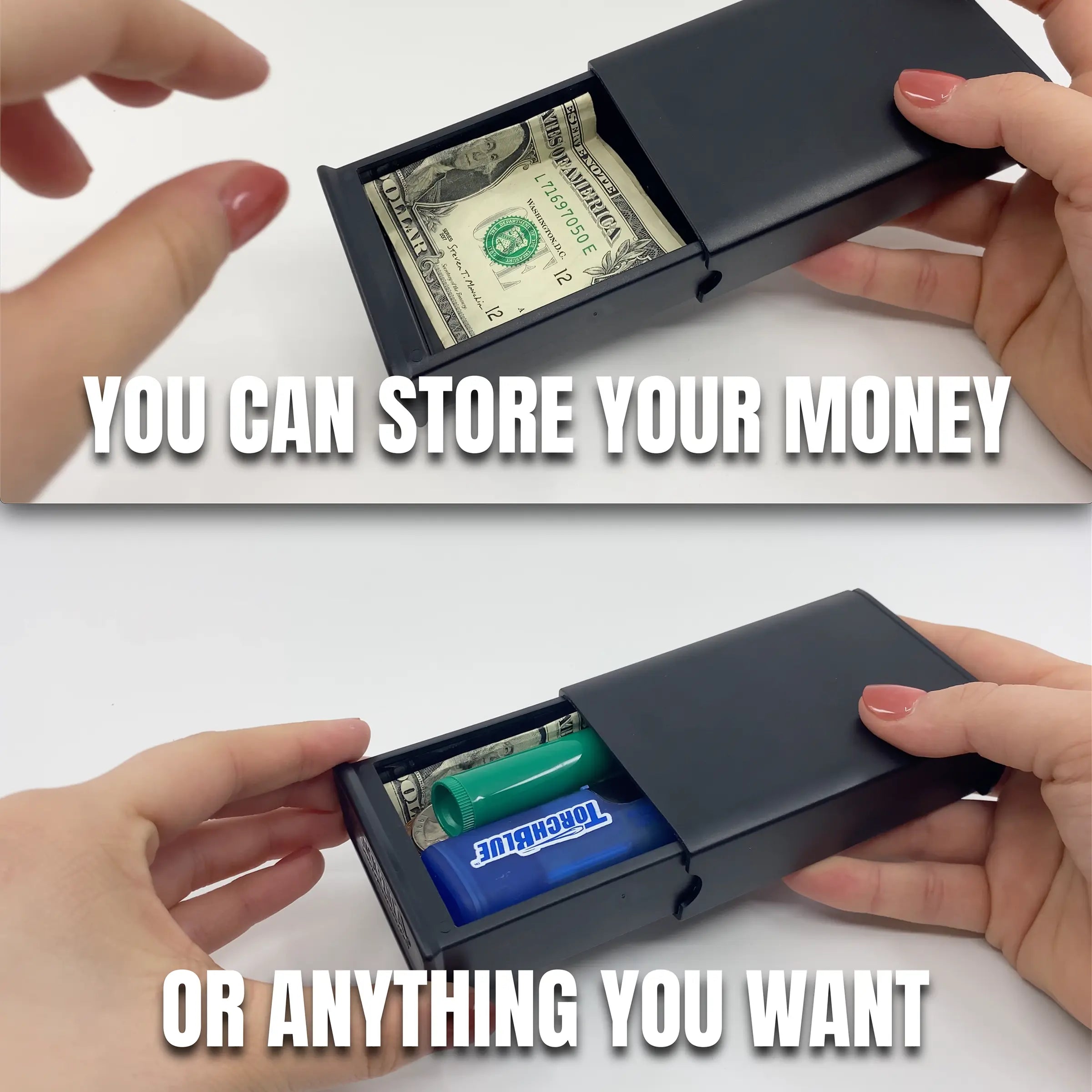 This Magic Box will keep all your stuff secure. It requires a special trick to open! Once you learn the special trick (printed on the card), you can open the box and no one else can. Great for storing money, IDS, credit cards valuables, smoking accessories and more.