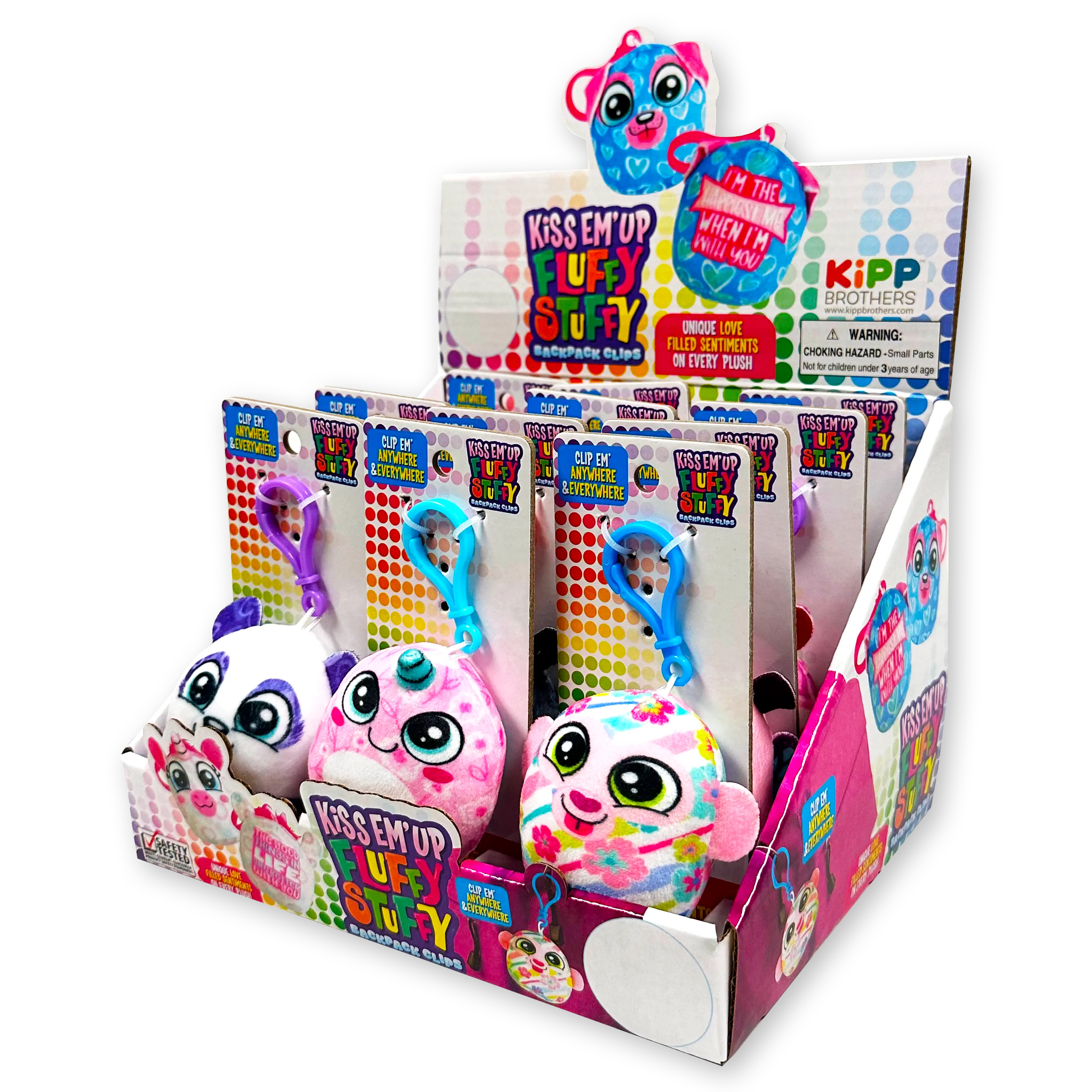 Wholesale Mini KissEm Up Plush Clips 12 Pieces Per Display 23697
