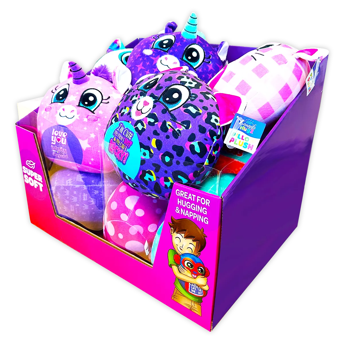 Kids Plush Fluffy Stuffy display includes super snuggly pillow plush stuffed animals with patterns to match your playful style.