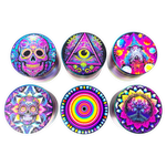 High strength, lightweight 4 Piece Metal Grinder made from high quality aluminum with an ultra-durable, hard anodized finish with assorted designs printed on top. Includes free scraper tool!