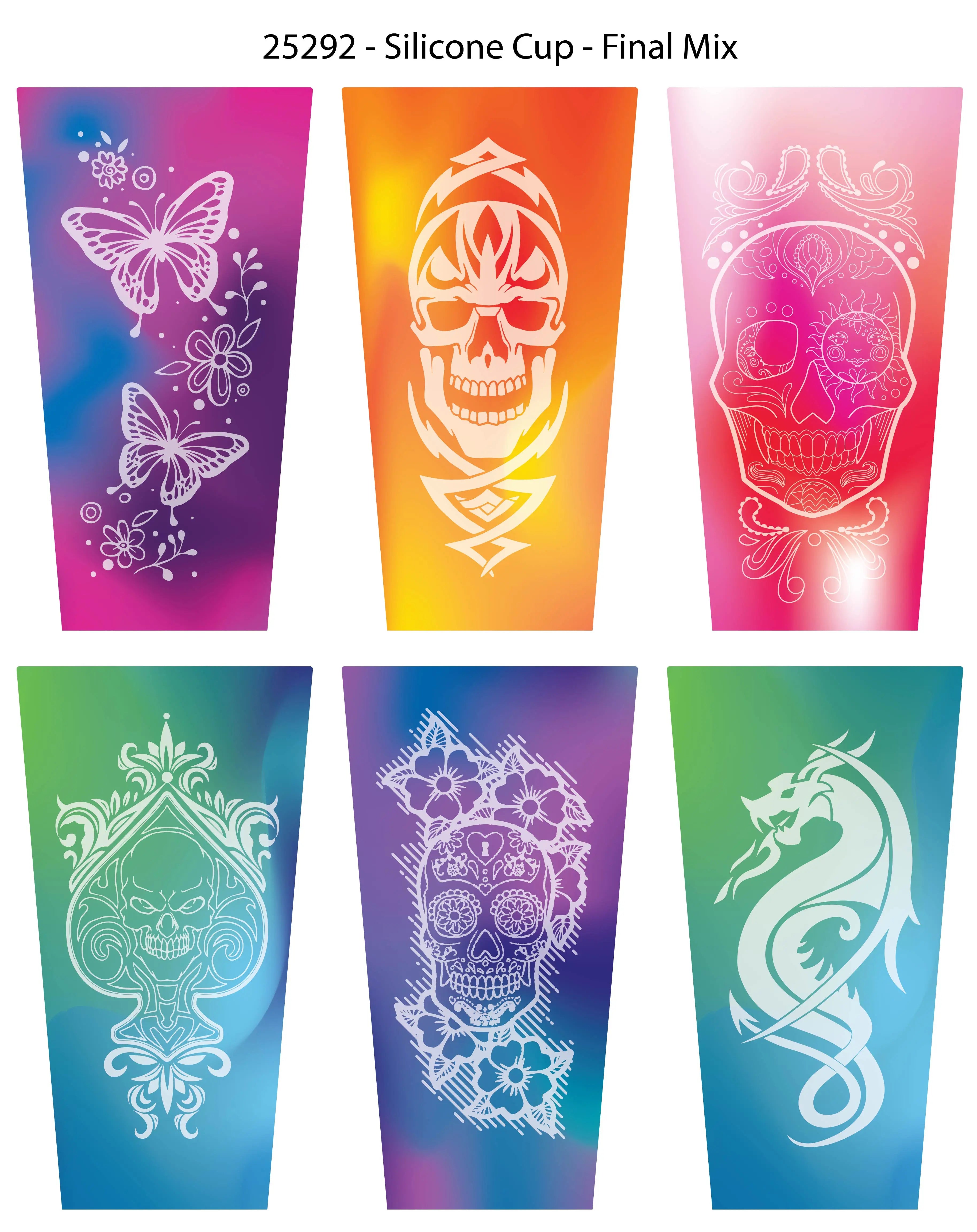 Experience convenience and durability at its finest with Roughneck 16oz Silicone Cups. Includes removable lid and straw! These cups are perfect for keeping your drinks cold for hours, while also being BPA free and dishwasher safe. Whether you're enjoying cocktails, juice, water, or soda, these cups are perfect for both indoor and outdoor use. Choose from a variety of trendy designs such as skull, butterfly, and dragon. Say goodbye to spills and hello to effortless style with Roughneck Silicone Cups.
