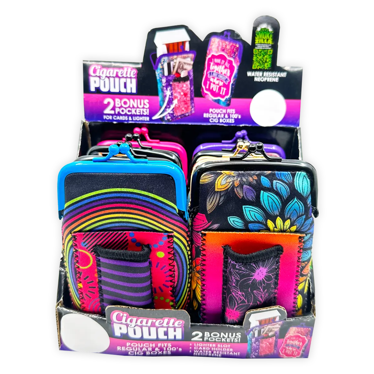 Neoprene Cigarette Pouch with Pocket - 8 Pieces Per Retail Ready Display 25089