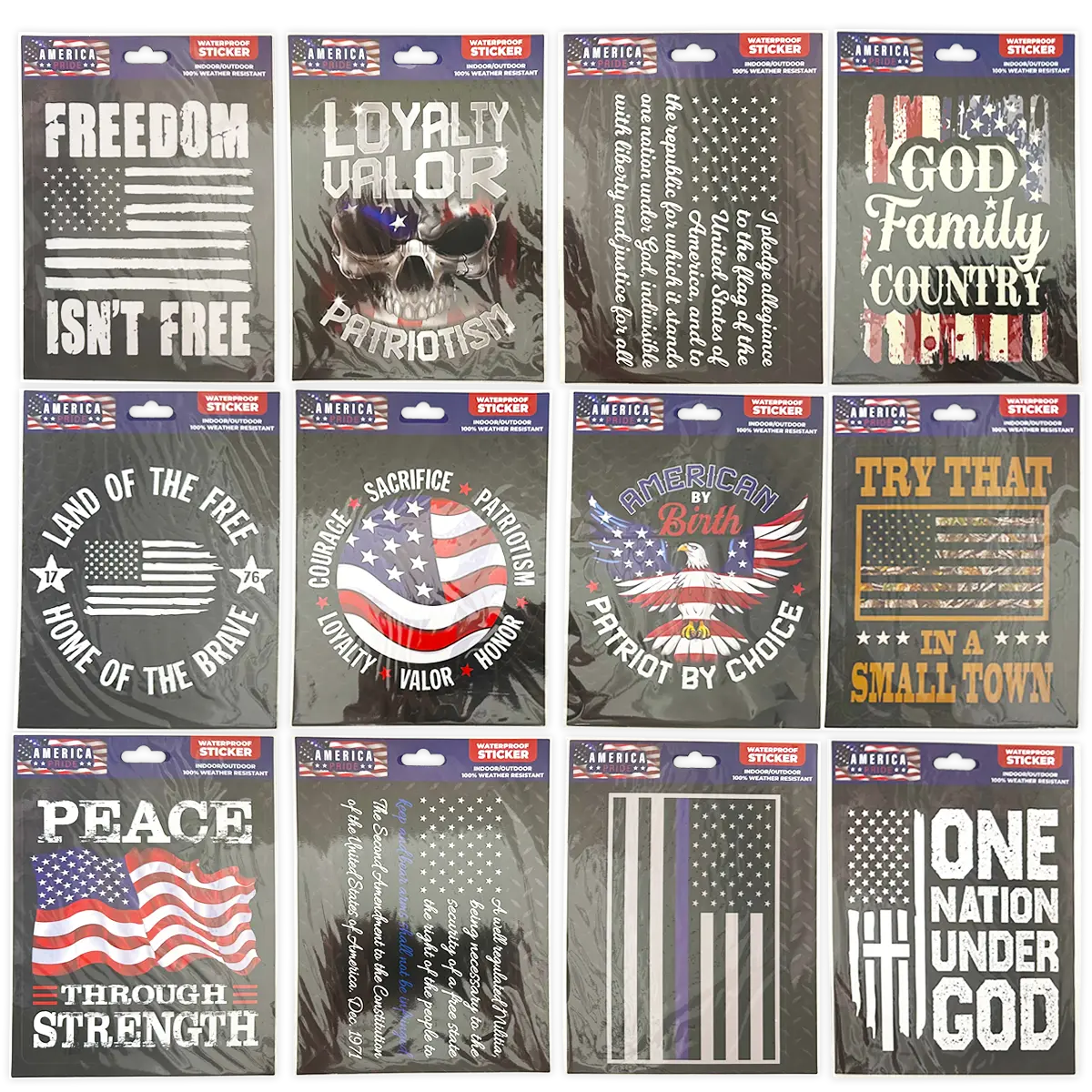 Patriotic USA Flag Decal Stickers - 12 Pieces Per Retail Ready Display 25212