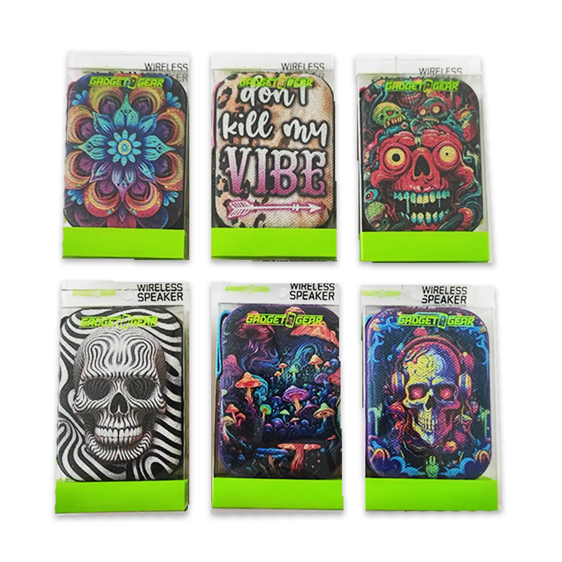 Introducing our Wireless Speaker, featuring Bluetooth technology and an on-the-go strap for convenience. Wirelessly play music from your phone with 3 hours of playtime and a 400MAH battery. Enjoy FM radio and use the Aux 1/8" plugs for even more options. Comes in 6 different cool designs, so it's the perfect mix of function and style.
